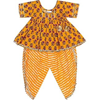 The Root And Craft Kids Birthday Photoshoot Outfit Dress Girls Bandhani printed Top With Dhoti pant & Hairband Born Baby Photography Photoshoot Props(0to 18 Month)