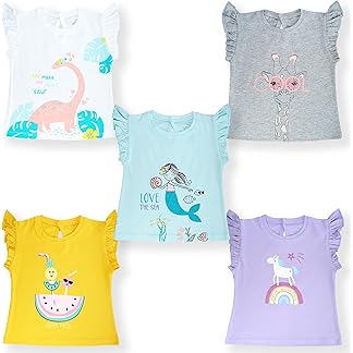 YUV Baby Girls’ 100% Cotton Printed T-Shirt (Pack of 5)