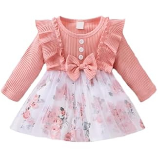 OMALI Baby Girl Dungry Dress | Long Sleeve | Infant Casual Dress | Ruffle Print Clothes