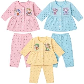 KIDS PARYANIS Baby Girl’s Fabulous Collection of Printed Full Sleeves Soft Hosiery Cotton Vests,Jhabla Frock with Pyjama Pants Dress for Kids Infant Toddler (Set of 3)
