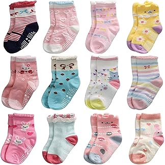 Kidbee Girl’s Cotton Anti Slip Baby Grip Socks and Design May