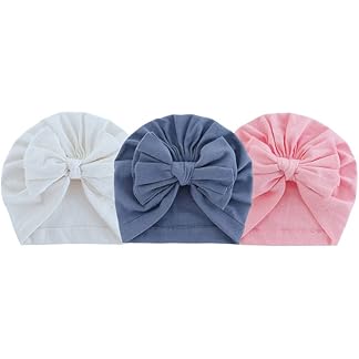 3 Piece Baby Bow Cap -Turban Bow Cap Baby Bow Cap -Turban Bow Cap,Baby Cap, Turban Cap, Baby Headwear Suitable for 0 to 12 Months Baby Multicolour