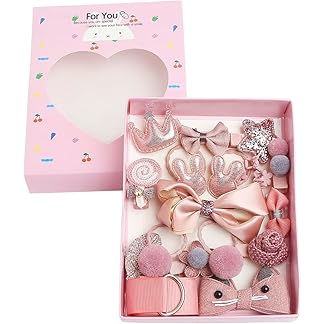 BabyMoon 18Pcs/Set Mix Style Headwear Set Children Accessories Ribbon Bow With Full Covered Clips Hairpins For Girls Princess Crown Hair Accessories With Gift Box 1 (Pack of 1)