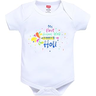 BUMZEE Unisex Baby Premium Cotton My First Holi Bodysuit