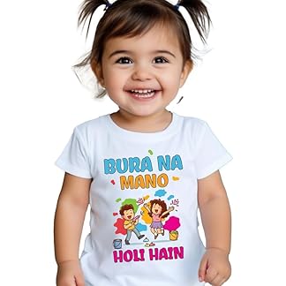 Raavi colors Holi t-Shirt for Baby Girl and boy Regular Dry fit bura na Mano Holi hai Printed for Kid Half Sleeves White t-Shirt……1