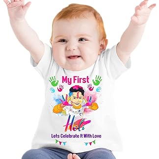 GIFT JAIPUR My First Holi Lets Celebrate Tshirt for Kids Baby boy Girl Infant Unisex Half Sleev Round Neck Tshirts
