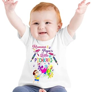 GIFT JAIPUR Little Pichkari Printed Holi Tshirt for Kids Baby boy Girl Infant Unisex Half Sleev Round Neck Tshirts
