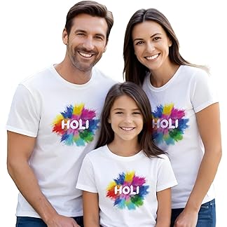 Niku Graphic Printed Holi T-Shirt for Family, Unisex, Kids, Baby | Casual Half Sleeve Round Neck Tshirt | 100% Cotton | Pack of 3