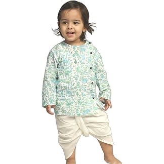 POLKA TOTS Boy’s Cotton Full Sleeve Angrakha Kurta with Dhoti Set for Baby Kid, Traditional Ethnic Wear for Kids, Printed Dhoti Kurta Set with Round Neck for Boy’s