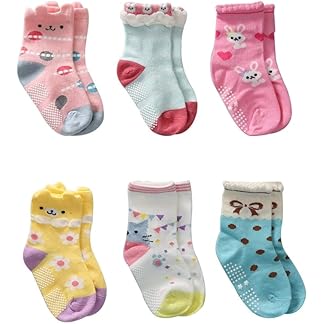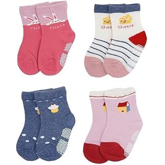 Non Slip Baby Socks for 1-3 Years – Anti Skid Cotton Socks for Toddlers | Baby Girls 12-36 Months | Crawling & Walking Socks | Pack of 4 (Girls)