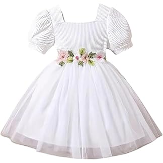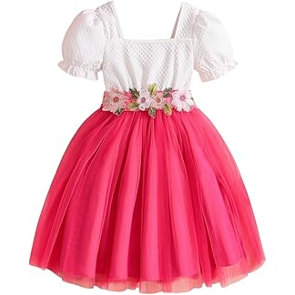 Niren Enterprise Baby Girl Frock – Short Sleeve Embroidered Floral Dress with Belt, Square Neck, 1-Pack