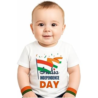 Happy IndependenceDay Baby T-Shirt, White Cotton, Tricolor Design with Printed Free 2 pcs warist Band