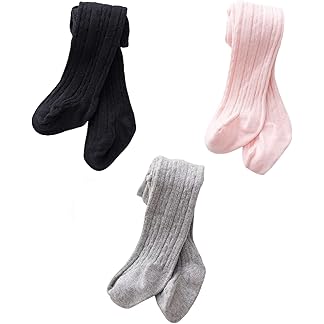 SYGA Baby Tights Soft Cotton Leggings For Girls Toddler Solid Knit Stockings Socks Warm Crochet Pants Pack Of 3