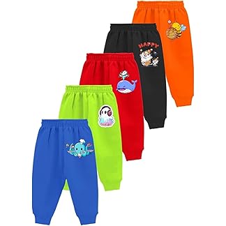 Lush Plush Cotton Pajama Pants for Baby Boys and Baby Girls (Unisex Kids) (Printed – Multicolor) (Pack of 5 Combo Set)