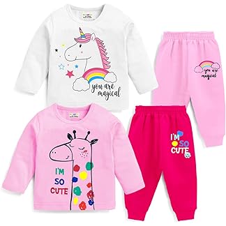 Kuchipoo Baby Girl Regular Fit Cotton T-Shirts and Pyjamas Set