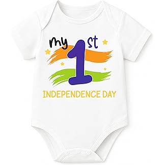 Lillypupp My First Independence Day Cotton Romper,Unisex Kids Half Sleeve White Romper, 0-12 Months, Infant Cloth for Boys & Girls.
