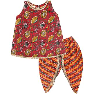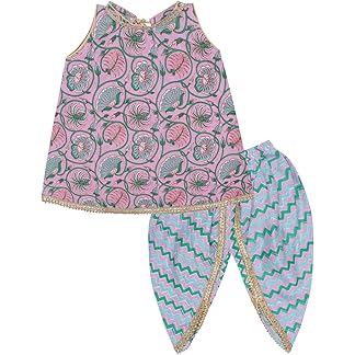 superminis Baby Girls Sangakari Print A Line Style Sleeveless, Round Neck Kurti and Dhoti with Elastic Closure Ethnic Dress
