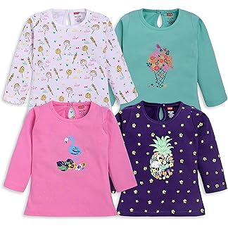 LuvLap Baby Girls 100% Cotton Regular Full Sleeve Top Pack of 4