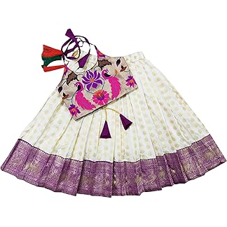 FELIZ THE DESIGNER STUDIO Baby Girls Readymade South Indian Pattu Pavadai Lehenga Choli Set For Kids