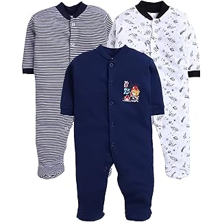 EIO 100% Cotton Baby Rompers Sleepsuits Jumpsuits Night Suits for Newborn Baby Boys & Girls | Soft Infant Bodysuit | Pack of 3 Kids Rompers