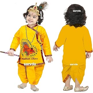 Sarvda Krishna & Radha Dress for kids with accessories Mukut Mor-Pankh Kundal Flute etc Janmashtami Costume for 1 2 3 4 5 6 7 8 Year Boy & Girls