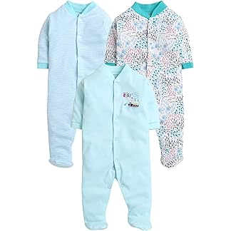 EIO 100% Cotton Baby Rompers Sleepsuits Jumpsuits Night Suits for Newborn Baby Boys & Girls | Soft Infant Bodysuit | Pack of 3 Kids Rompers