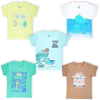 YUV Infant Baby Boys & Girls 100% Cotton Printed Multicolor Half Sleeve T Shirts – 0 to 24 Months Babies, Pack of 5