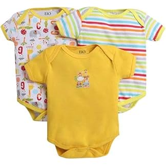 EIO Newborn Baby Cotton Half-Sleeve Striped & Printed Onesie Bodysuit Set with Coordinating Cap, Pants & Booties Mitten 5pcs