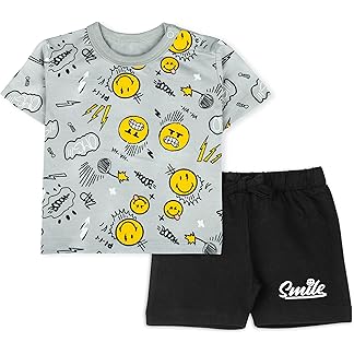 ARIEL Baby Boys & Baby girls Cotton Printed Round Neck Half Sleeve T-shirt & Short Sets