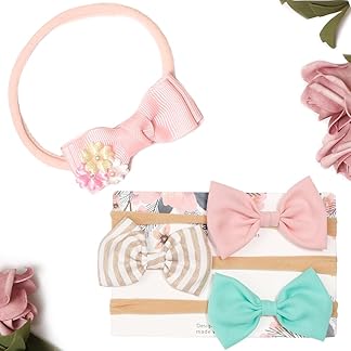 ANZAILALA 4pcs Flower Headbands Elastic Floral Hair Band, Bows Wrap Headband for Baby Girls, Infants and Newborns – Multicolor