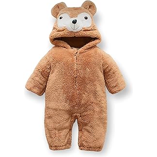 BRANDONN Unisex Baby Flannel Jumpsuit Panda Style Cosplay Clothes Bunting Outfits Snowsuit Hooded Romper Outwear (Camel TeddyBear, 3-6 Months)