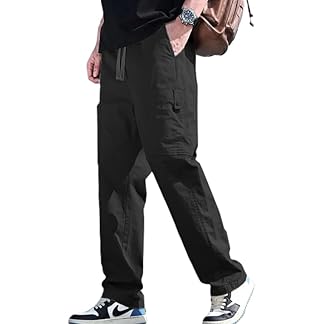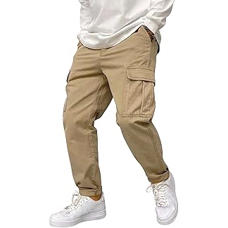 Leriya Fashion Men Mid Rise Cargo Pants with 6 Pockets, Premium Cotton Drawstring Trousers, Comfortable Casual Workwear Joggers, Stretchable Track Pants for Office and Parties
