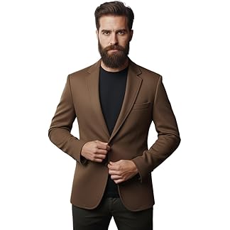 CJC Men’s Formal Brown Blazer, Classic Single-Breasted Suit Jacket, Business Professional Wear