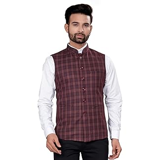 Utsav Fashion Mens Checked Sleeveless Nehru Jacket with 1 welt & 2 slip pockets