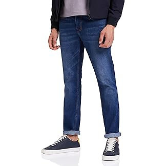 Peter England Men’s Tapered Fit Mid Rise Classic Tape Stretchable Twill Jeans