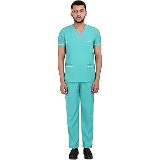 ChiefUniforms Scrub Suit set with piping For Male V-Neck 3 Pocket Top and Cargo Type Trouser (38-M, Sea Green)