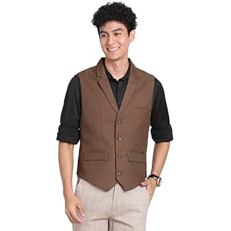 Turtle Men Poly-viscose Brown Self Design Slim Fit Casual Waistcoat
