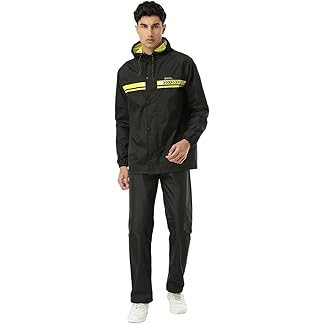 ZEEL Rain Coat for Men Waterproof for Bike Riders with Adjustable Hood along with Reflective back, Waterproof Rainwear Suit with Polyester Jacket and Pants, HERO