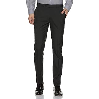 Raymond Men’s Slim Fit Mid Rise Poly Viscose Blend Solid Pattern Flat Front Formal Trouser