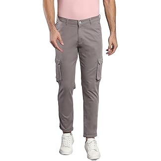 Dennis Lingo Solid Cotton Men’s Casual Cargo Pant, Tapered Fit, Mid Rise, Ankle Length Multi-Pocket Stretchable Cargos for Men, Trousers