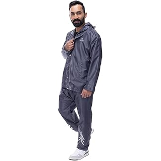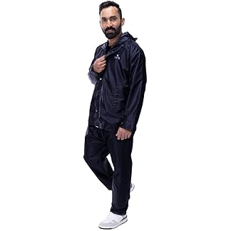 THE CLOWNFISH Men’s Waterproof Raincoat Double Coating Reversible Rain Suit with Hood & Inner Mobile Pocket. Set of Top and Bottom. Printed Plastic Pouch