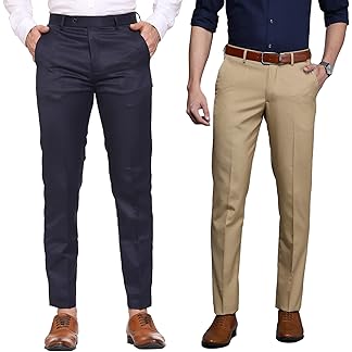 MALENO Men Formal Trouser Regular Fit Solid | Soft and Breathable Pant Combo (Pack of 2)