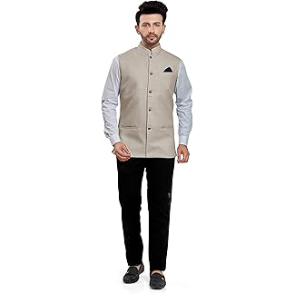 WINTAGE Men’s Poly Cotton Festive and Casual Nehru Jacket Vest Waistcoat