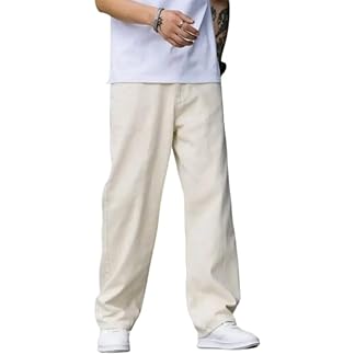 Comfits Men’s Loose Fit Baggy Jeans, Beige, Straight Leg Denim