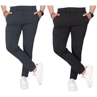 Jack and Jini Formal Pant with Expandable Waist for Men. Regular Fit, Flat Front, Premium Lycra Fabric for Office, Party and Casual Wear