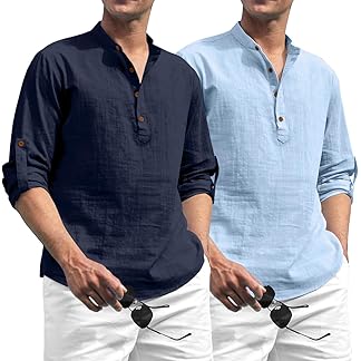 Zombom Combo of Men’s Solid Cotton Blend Full Sleeve Straight Kurta Shirt (Pack of 2)