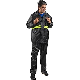 Bloomingdale Rain Coat For Men & Women Waterproof Bike Raincoat For Men With Pant Set Reflective Raincoat For Women, Boys & Girls Adjustable Top And Bottom Rain Coat For Women With Bag – Black
