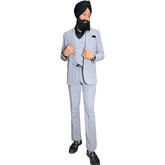 Gargian Men’s Designer Macro Polyviscose Three Piece Suit Set Coat Pant & Vest – Classic Formal Wear for Weddings Business Suit for Men and Special Occasions