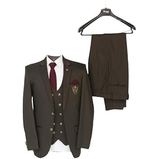 Royal Rich Men’s Regular Fit Three Piece Suit, Coat Pant Set with Waist Coat