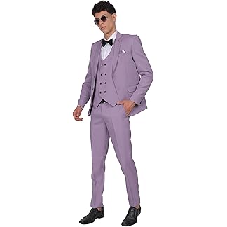 Royal Rich Men’s Regular Fit Three Piece Suit, Coat Pant Set with Waist Coat
